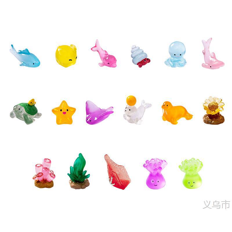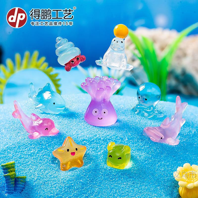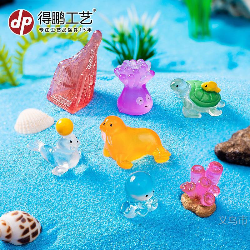 夜光海洋动物海豚海豹海狮海龟章鱼珊瑚树脂工艺品水族鱼缸小摆件