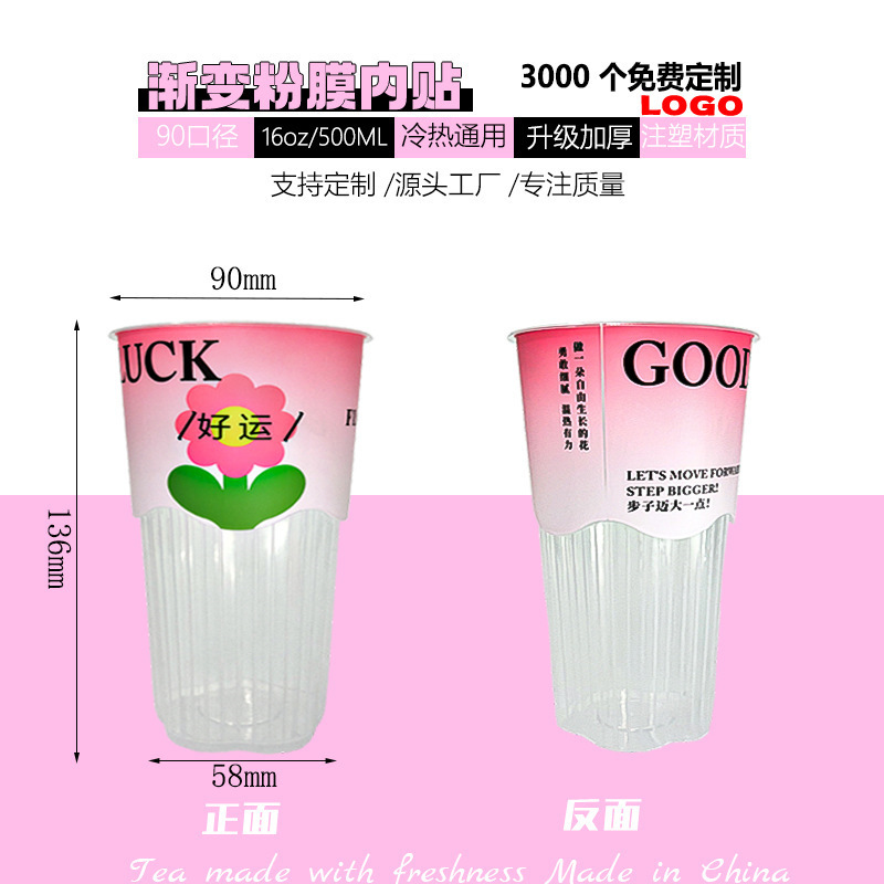 规格型号渐变粉色-500ml膜内贴杯;500个