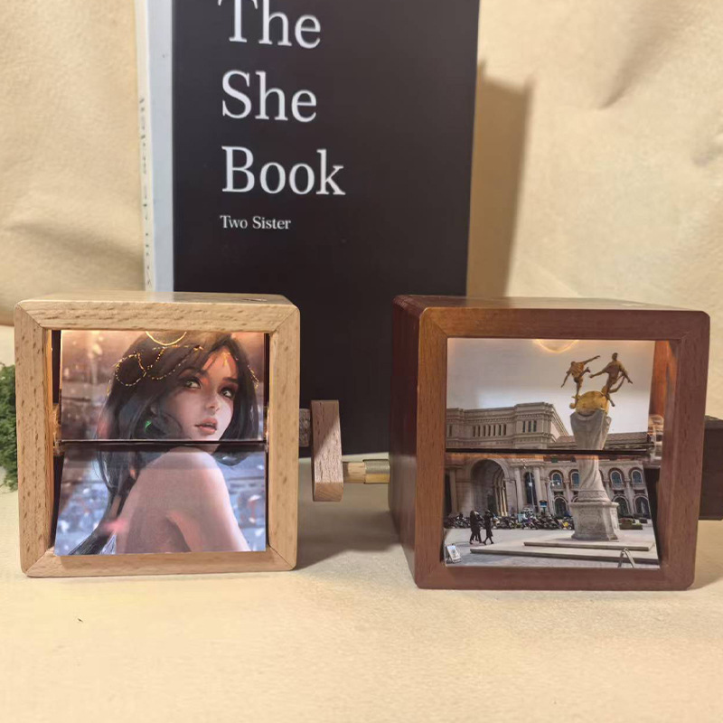 创意相框小夜灯卧室床头氛围灯机械手摇相册发光礼品电脑桌摆件