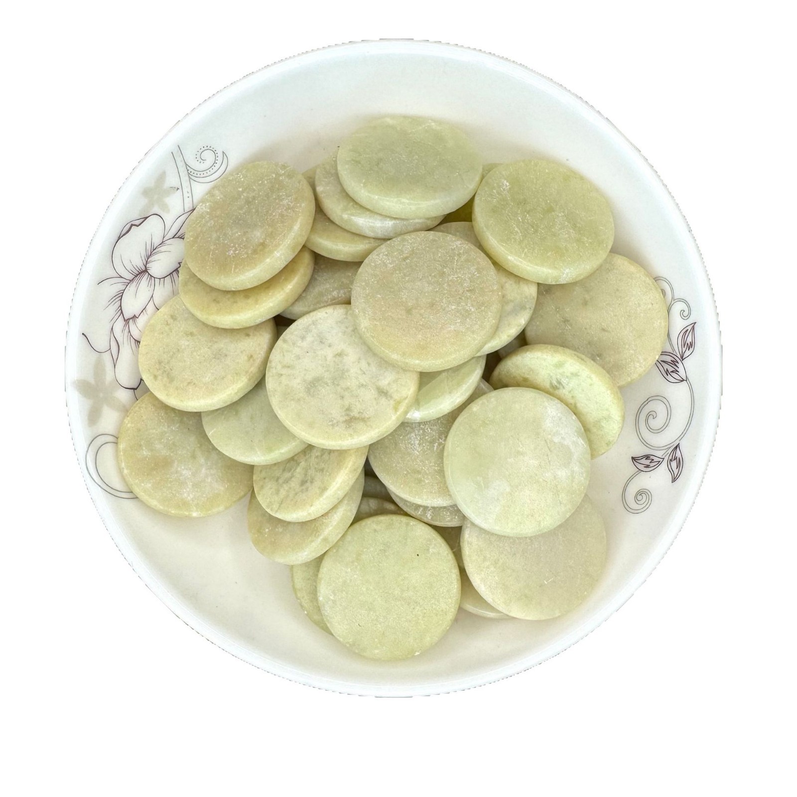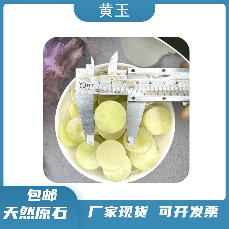 岫玉玉石黄石圆片25mm包邮扣子吊坠坐垫用可打孔抛光玉石片