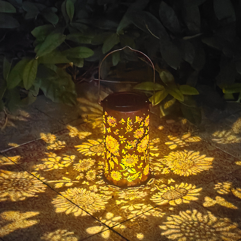 太阳能户外家用防水庭院灯花园草坪LED铁艺镂空太阳花悬挂灯