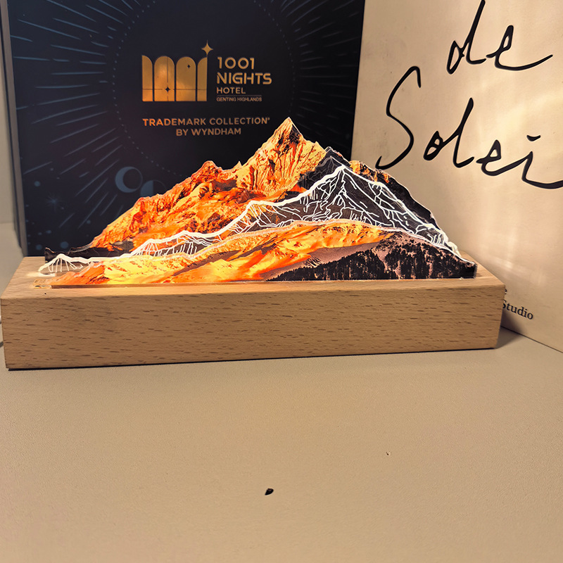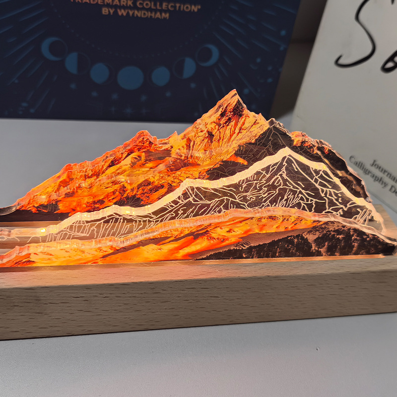定制日照金山摆件氛围灯文创发光纪念品桌卧室书房桌面装饰小夜灯