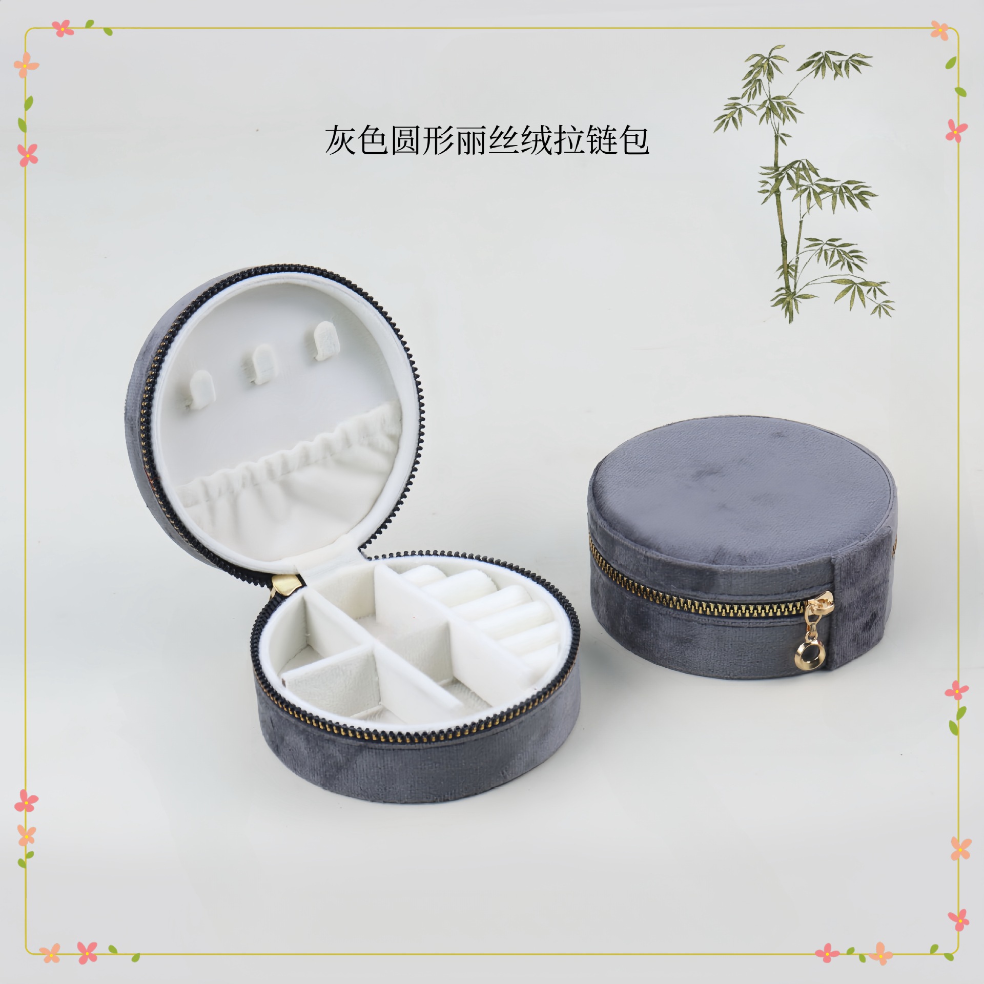 规格型号大拉链圆形首饰盒-灰色;10*10*4.5