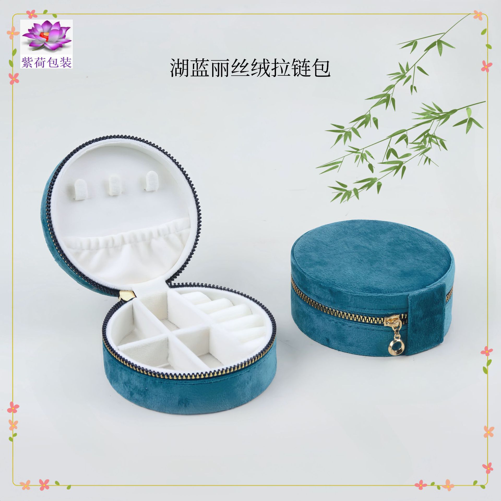 规格型号大拉链圆形首饰盒-湖蓝;10*10*4.5