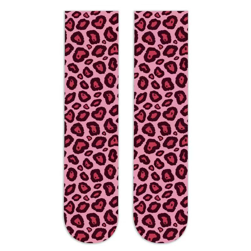 速卖通跨境新款春秋款丝袜印花小腿袜豹纹中筒袜高弹舒适潮流袜子