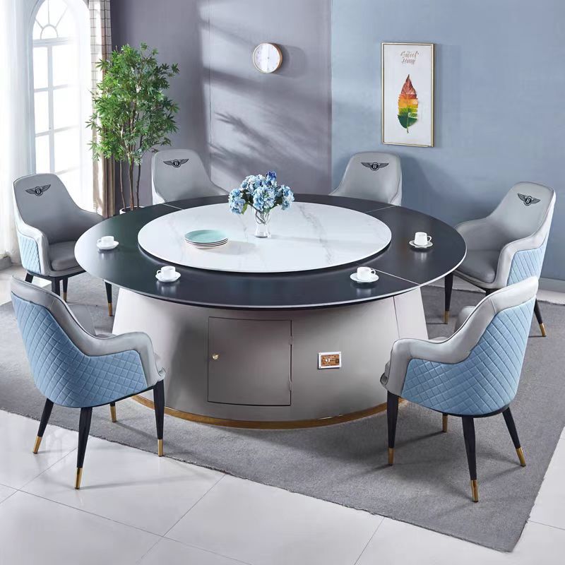 补chajia链接厂家批发零售岩板餐桌椅组合电动旋转火锅桌