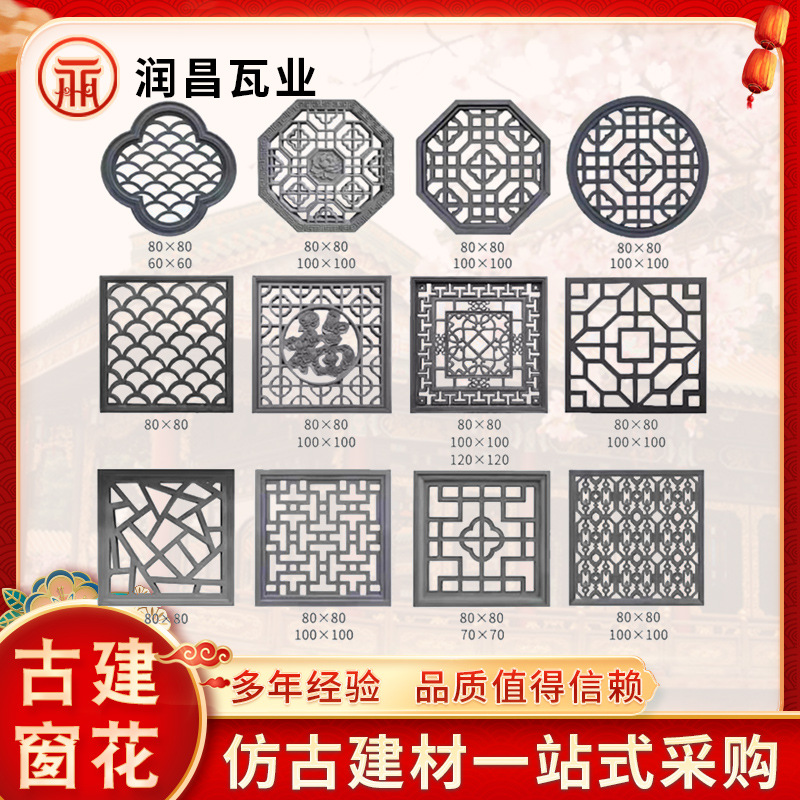 古建窗花 四角窗花眼镜窗花 仿古镂空装饰水泥花窗 徽派围墙装饰