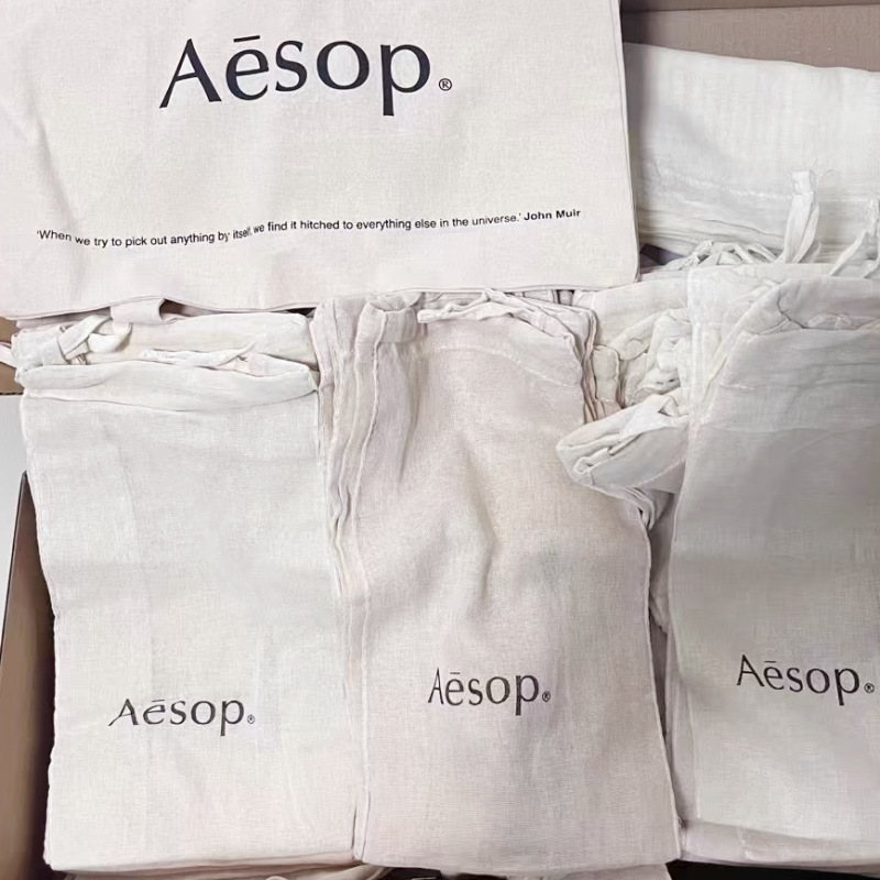 Aesop同款棉纱束口袋化妆品手霜精油棉麻棉布束口袋竹节棉包装袋