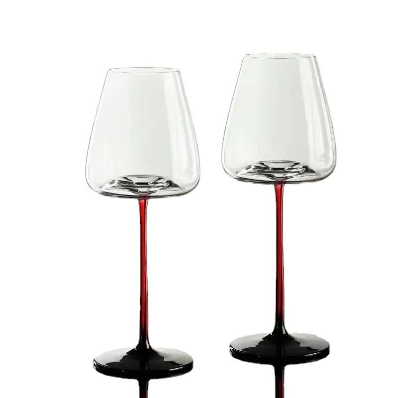 黑领结水晶玻璃红酒杯黑底洋酒红杆清酒波尔多香槟杯葡萄高脚