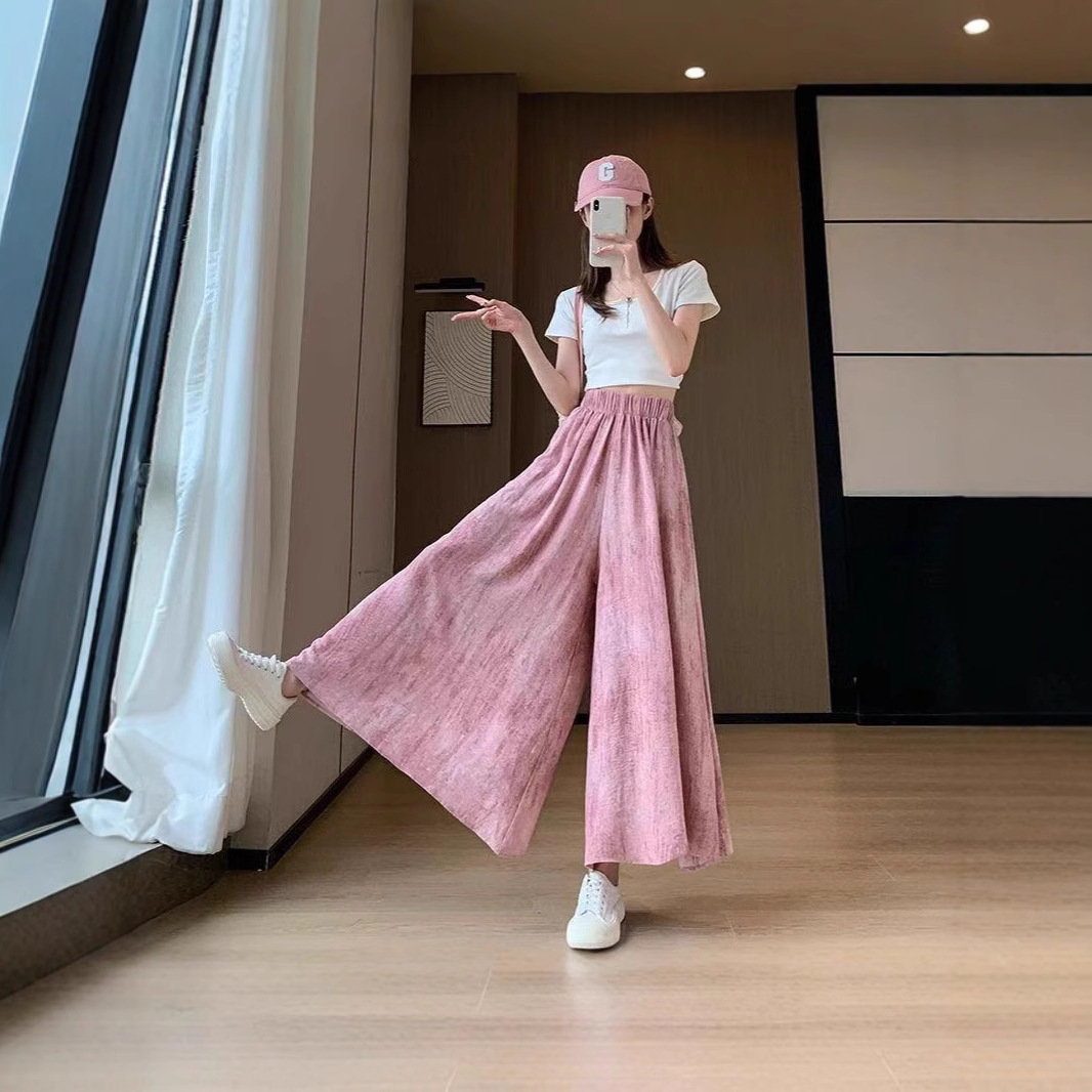 扎染休闲裤女夏季2025新款高腰垂感脏脏裙裤防晒凉凉裙裤薄