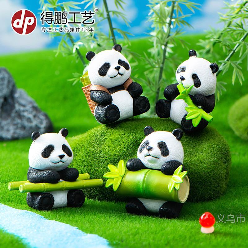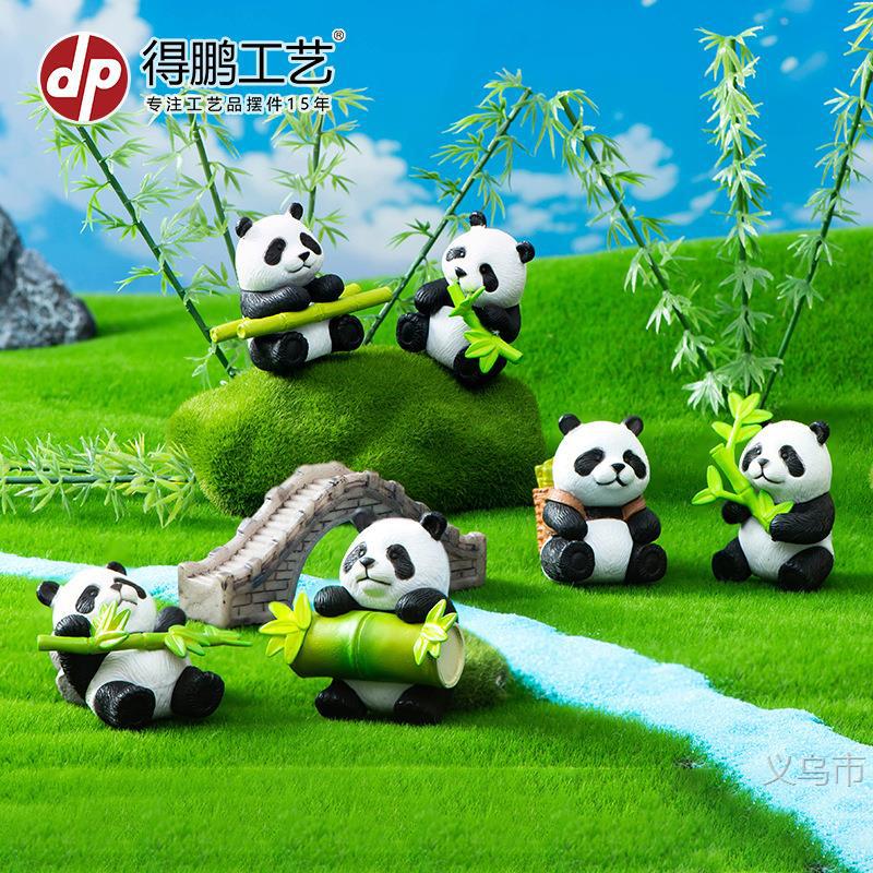 微景观摆件卡通可爱竹子熊猫公仔手办园艺盆栽钥匙扣桌面装饰摆件