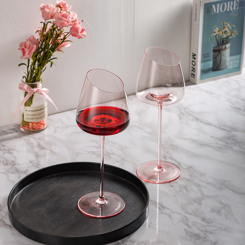 轻奢风火烈鸟斜口粉色红酒杯家用水晶玻璃高脚杯葡萄酒杯礼盒批发
