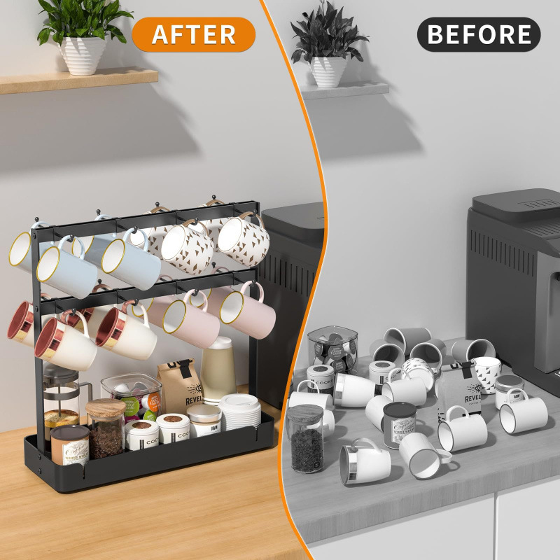 跨境家用厨房多层免打孔马克杯挂架杂物收纳整理架