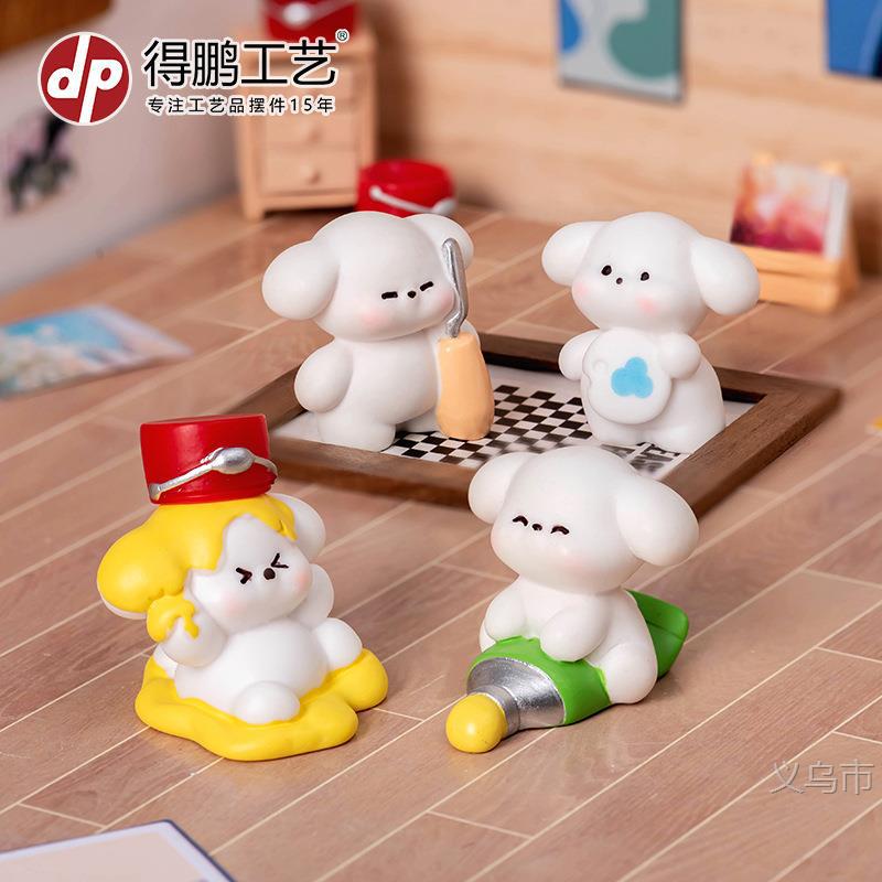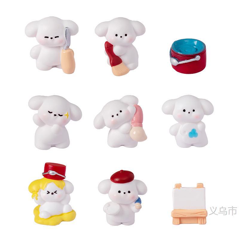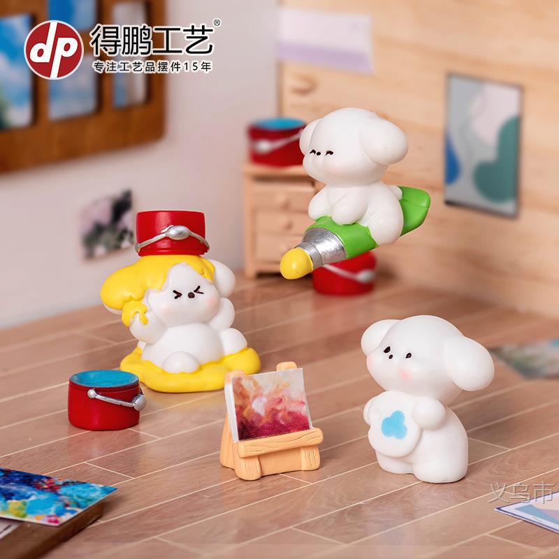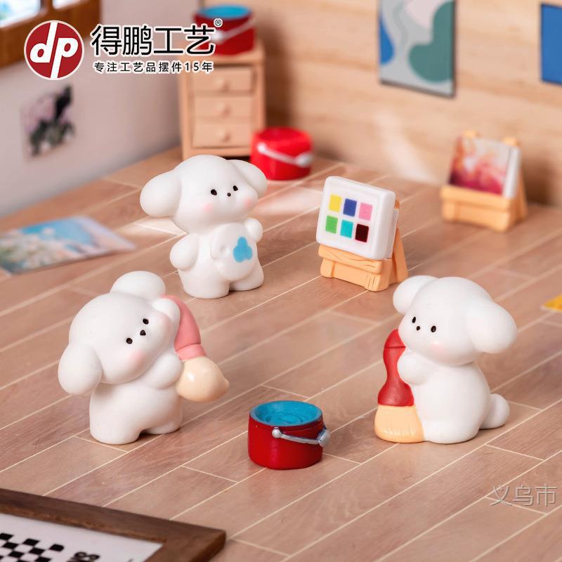 微景观摆件创意可爱画画小狗狗公仔手办工艺品桌面汽车树脂小摆件