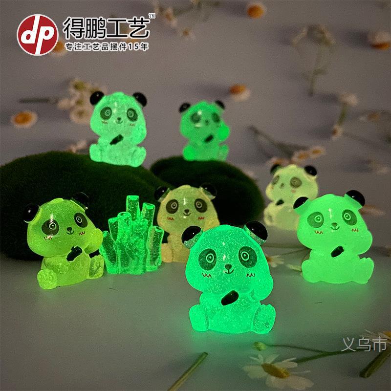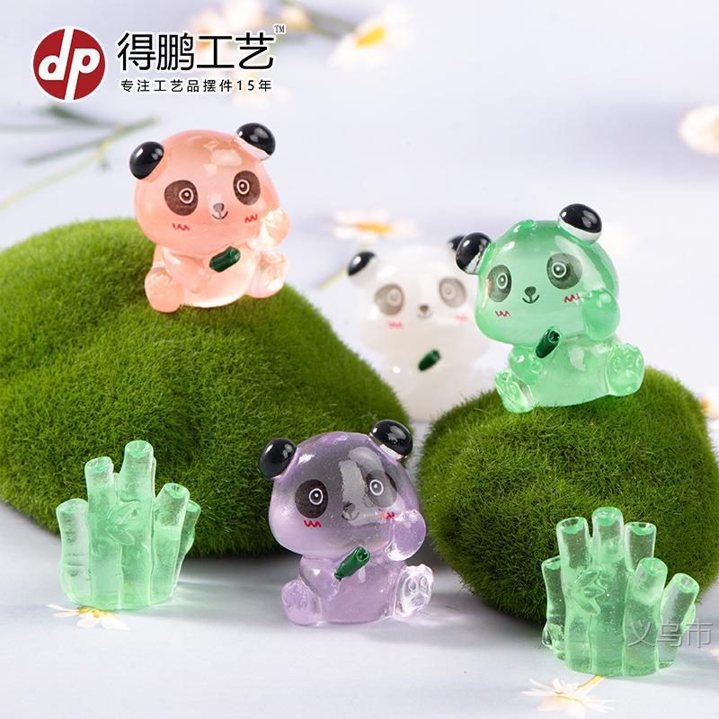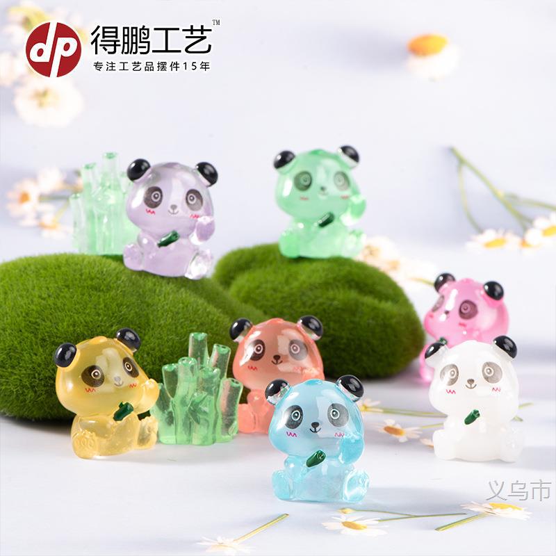 微景观树脂摆件夜光卡通小熊猫摆件桌面车载创意摆件装饰品配件