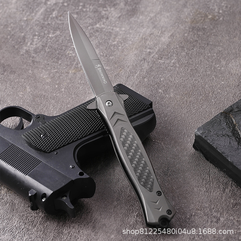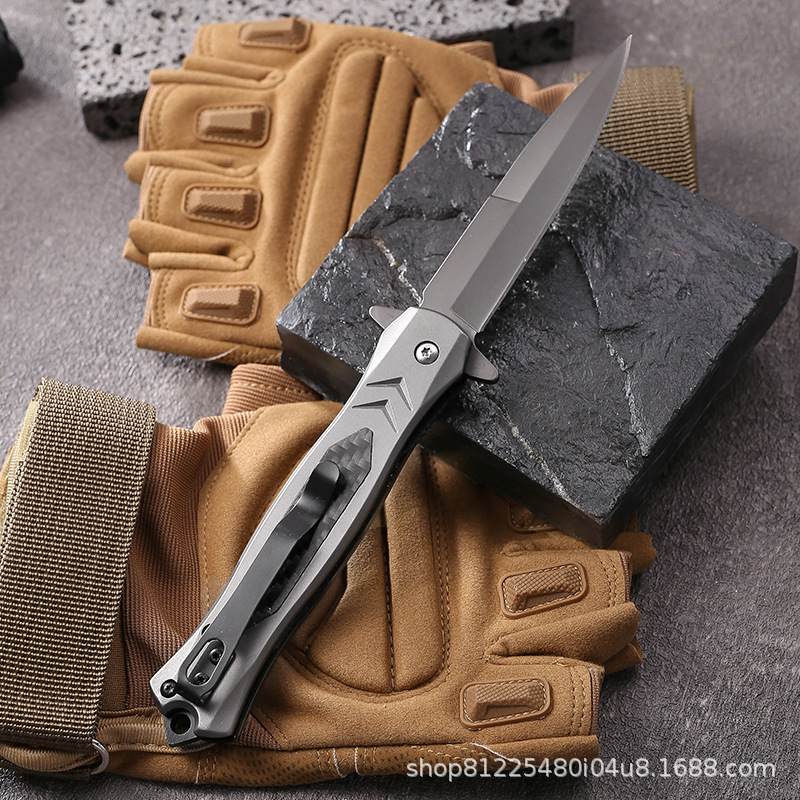 跨境碳纤钢柄户外折叠刀高品质不锈钢折刀防身直刀野营便携战术刀