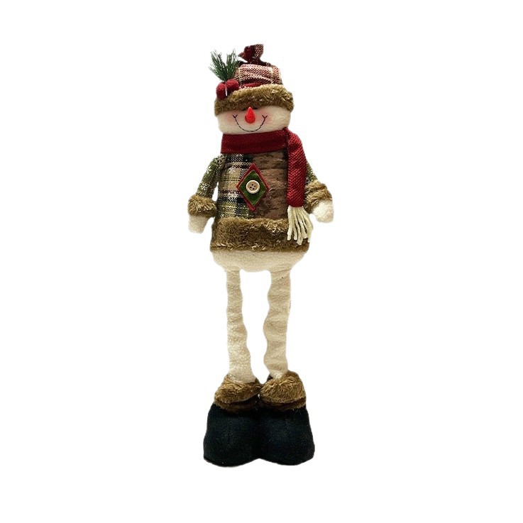 跨境新款圣诞节复古雪花格子布伸缩公仔酒店商场圣诞装饰布置摆件