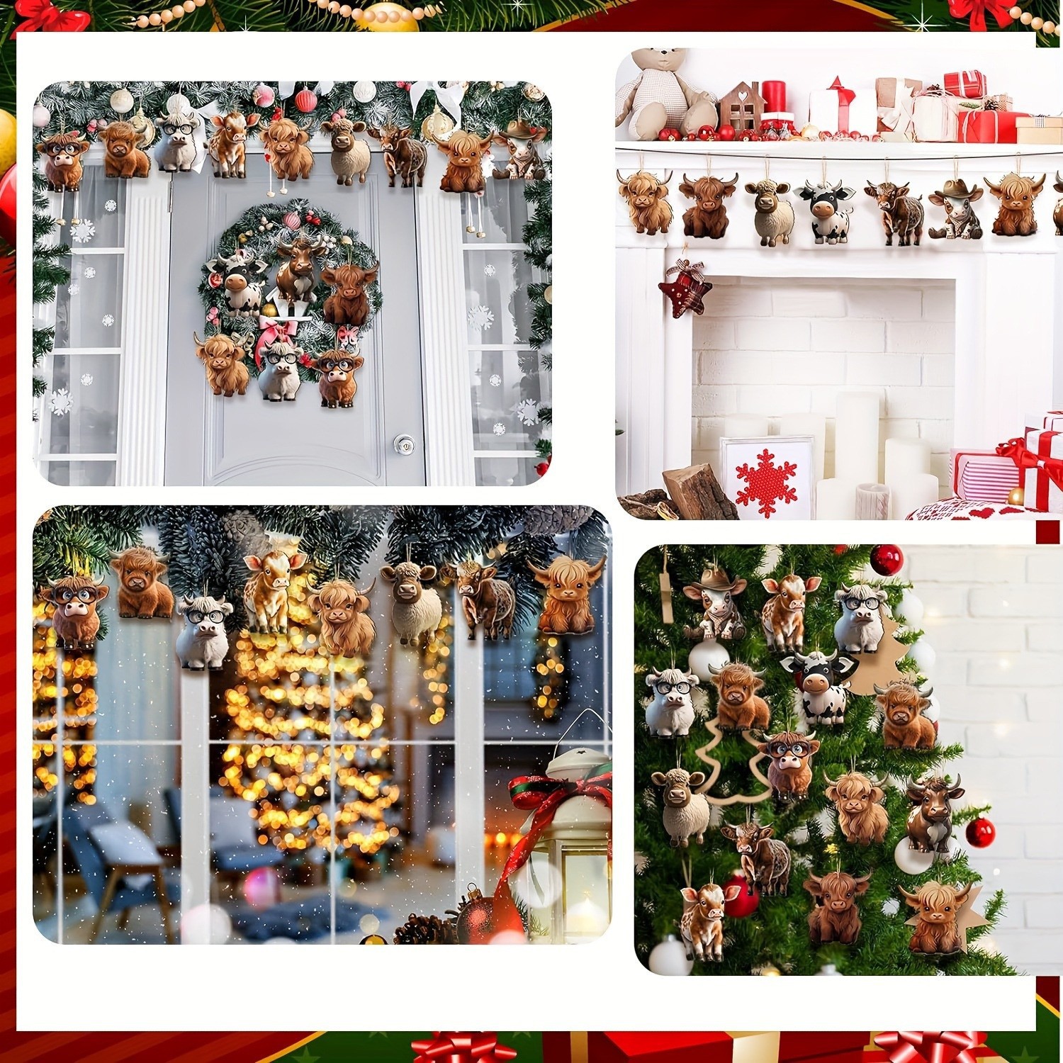 36件件创意圣诞树奶牛可爱木质高地牛木制悬挂装饰品批发