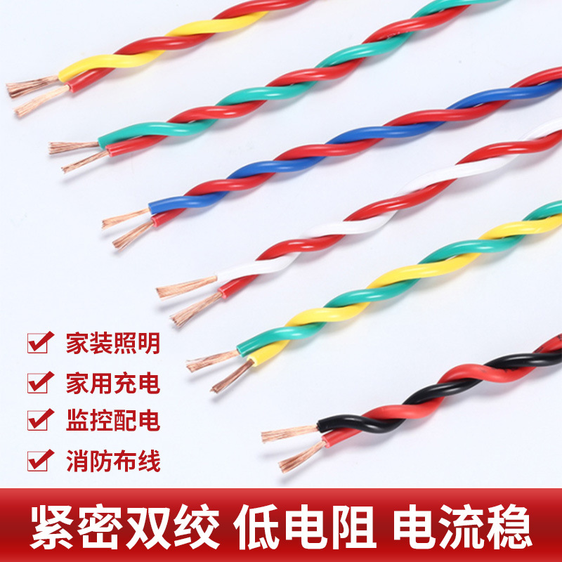 家用国标电线RVS花线纯铜芯双绞软线工程消防信号灯头线2芯阻燃线