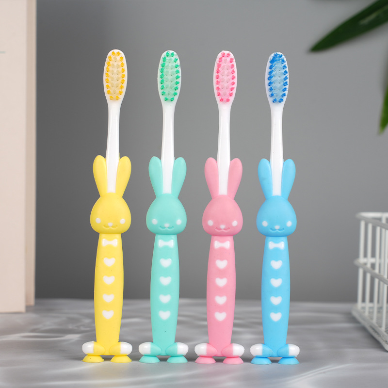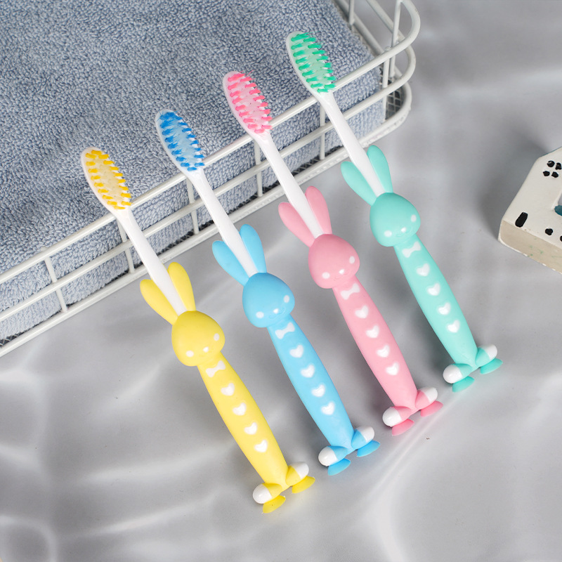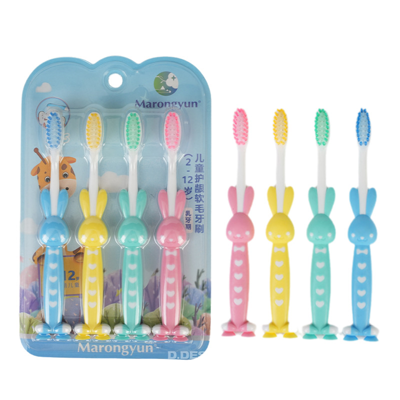 马卡龙色可爱兔子手柄细软毛牙刷小兔组合吸塑四支装儿童软毛牙刷