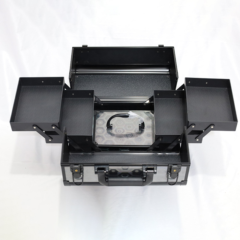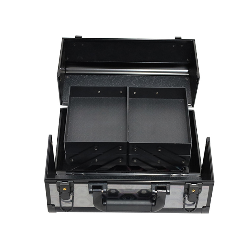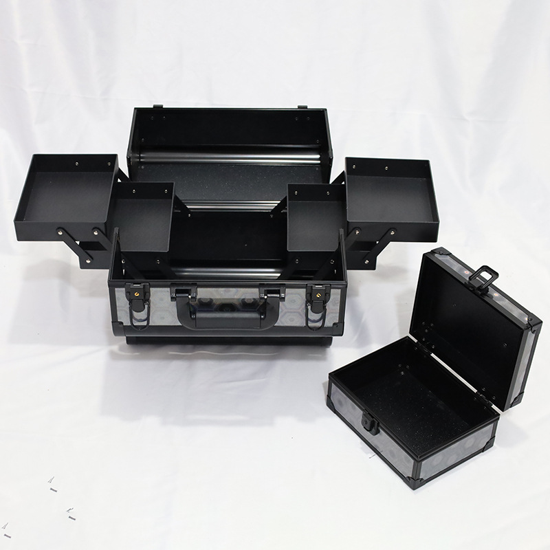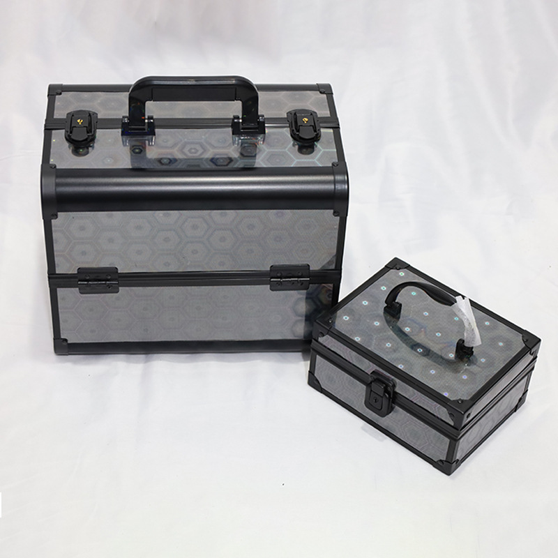 两件套化妆箱大容量双开彩妆箱铝合金美睫美甲工具箱批发家用收纳
