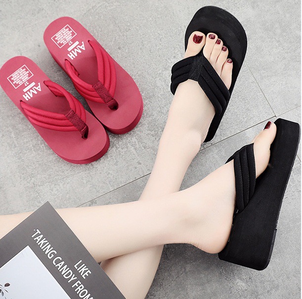 超火ins拖鞋女外穿夏2025新款欧美小个子增高厚底夹趾人字沙滩鞋