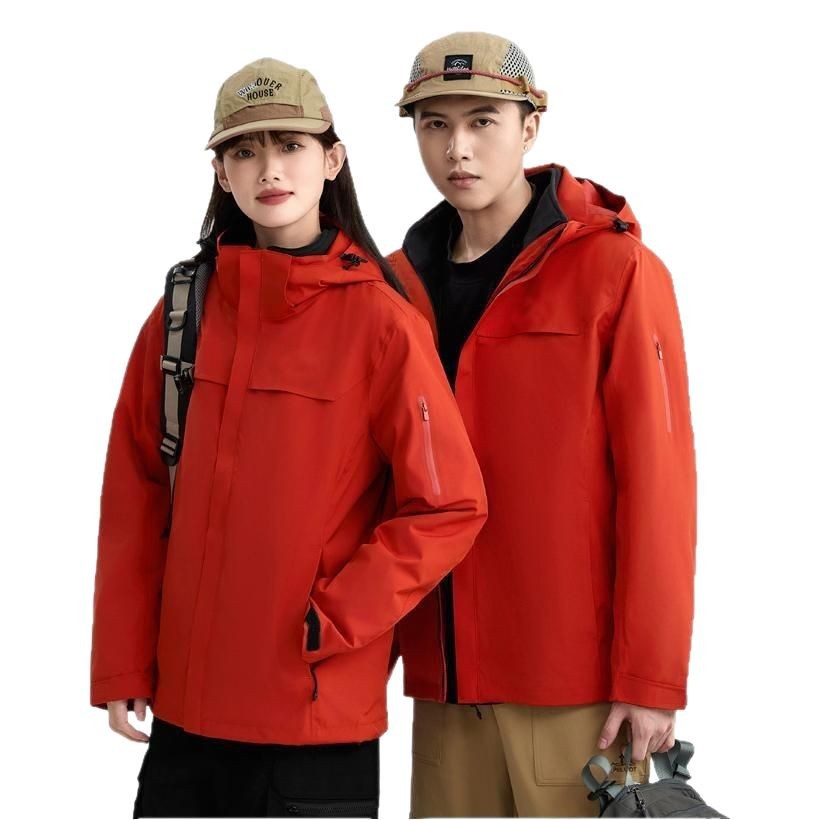 国标压胶朱雀红户外冲锋衣男女三合一两件套防风防水外套工作服
