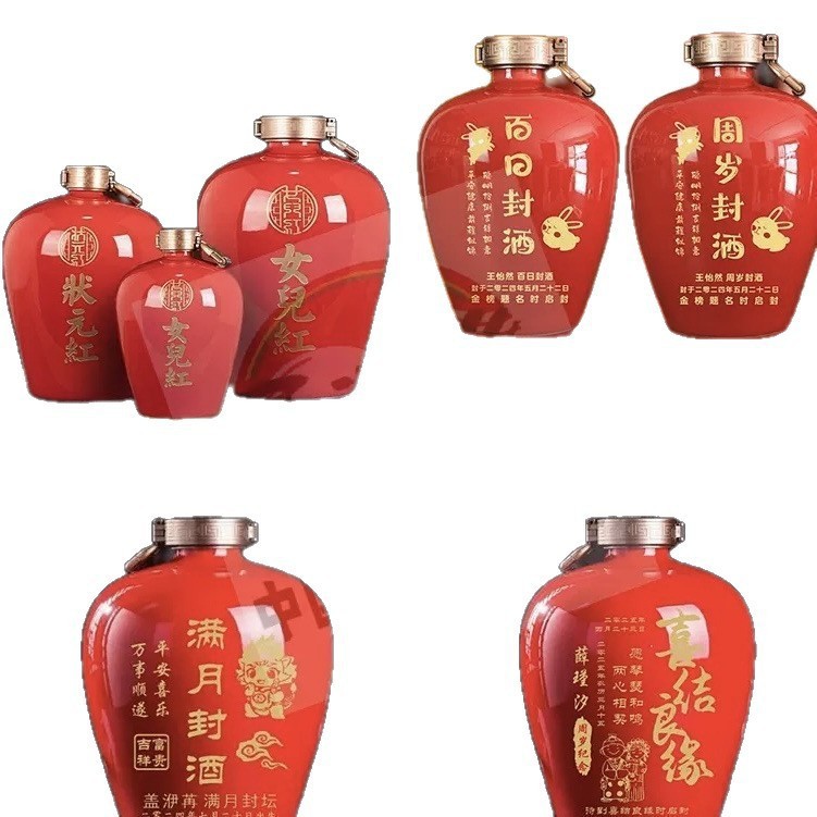 周岁封酒贴满月百天日封坛酒女儿红状元红结婚酒瓶空酒坛定 制刻