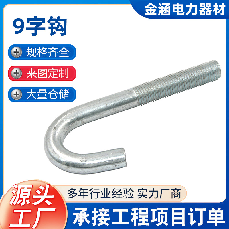 9子勾挂钩金属挂钩超市五金铁挂吊钩挂勾子国标碳钢9字异型螺栓