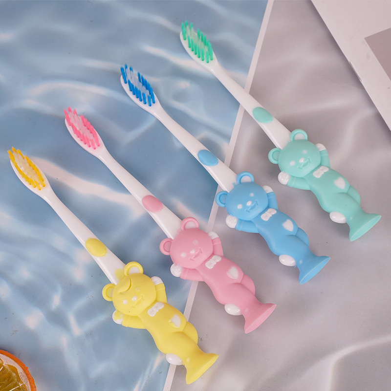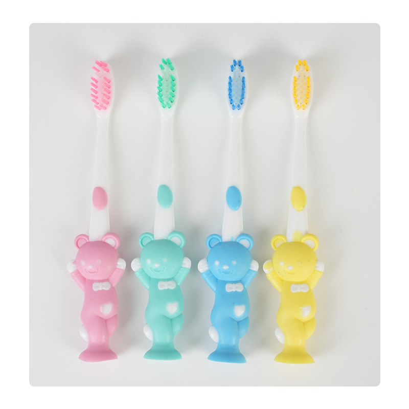 小熊吸塑四支装家用超市批发卡通可爱小熊手柄牙刷儿童卡通牙刷