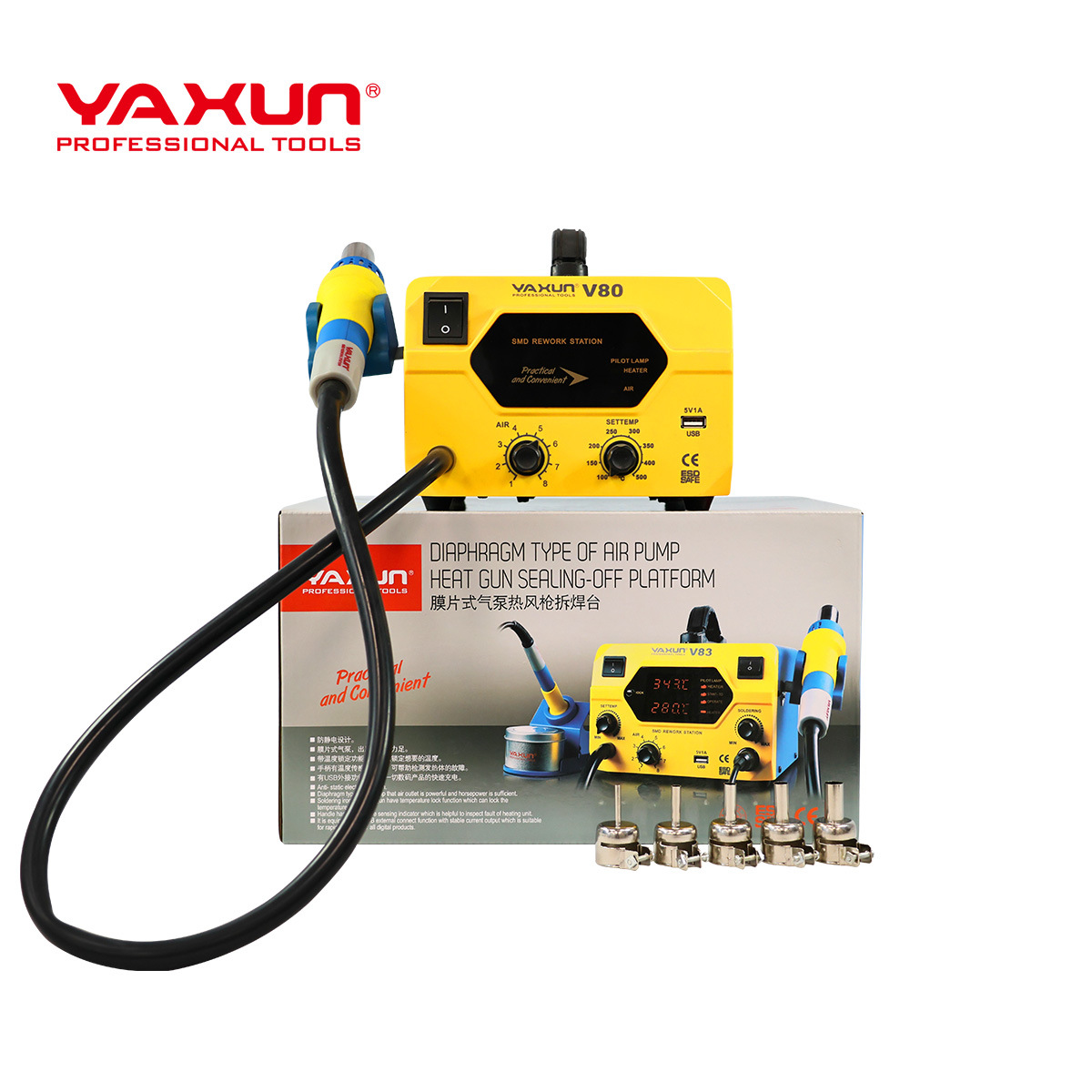 YAXUN快速升温热风枪V80膜片式气泵300W风枪加热焊台