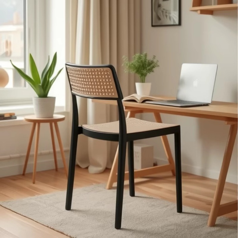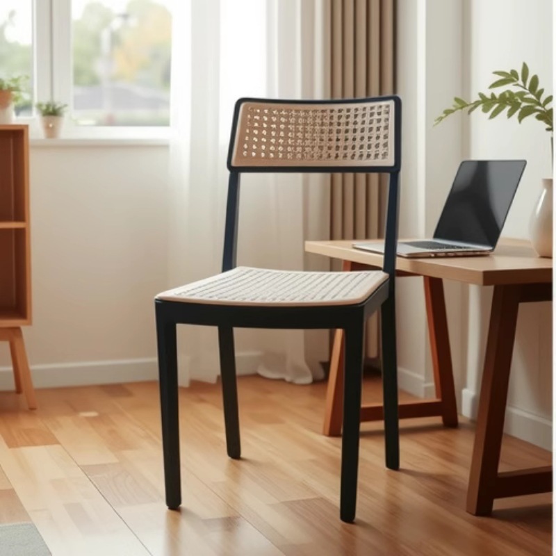 家用仿藤编餐椅现代简约酒店通用塑料靠背椅子阳台户外洽谈单人椅
