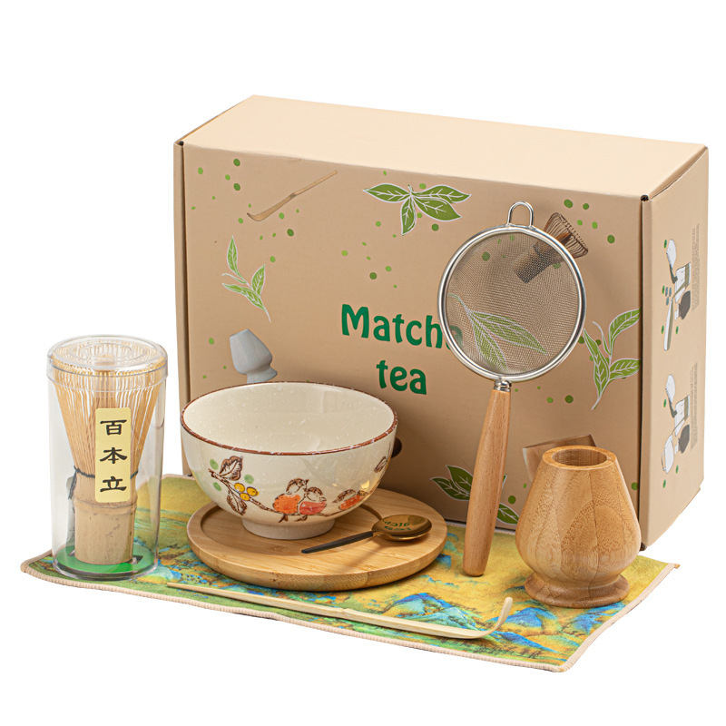 颜色抹茶碗套装8件套花鸟
