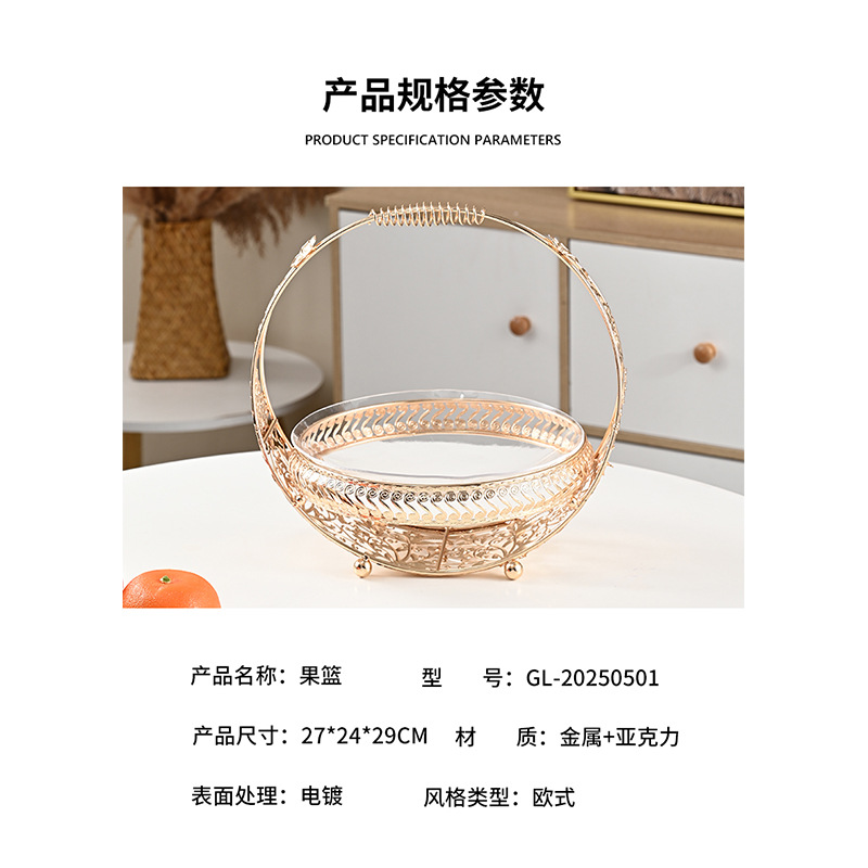 北欧风果篮客厅装饰摆件家用网红水果盘铁线工艺精美创意水果篮