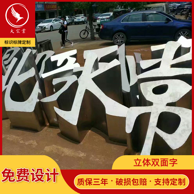 双面立体字斜坡字景观三维字立式大型落地字不锈钢景观字广告牌