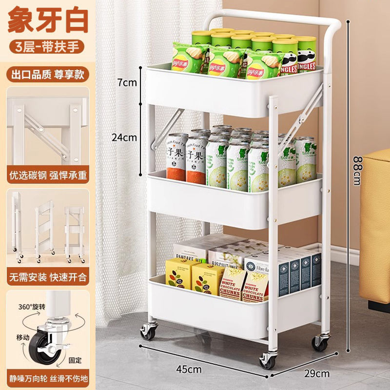 蜂网可折叠置物架卫生间浴室收纳架厨房客厅零食小推车整理多层