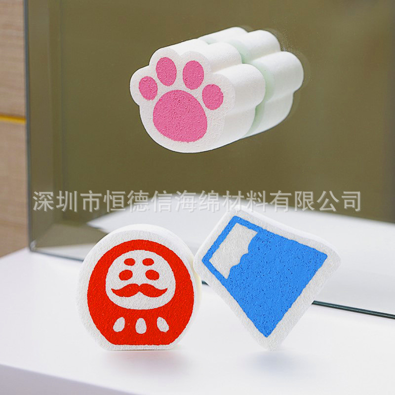 卡通图案粉红猫爪镜面海绵擦 鱼鳞镜面擦 清洁棉 按需印花定外形