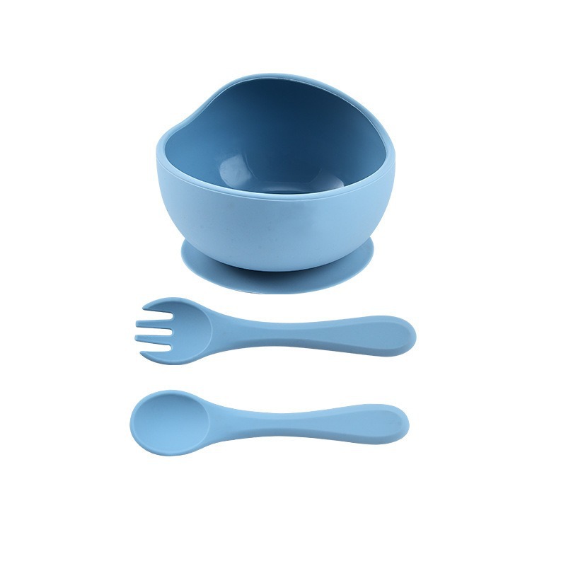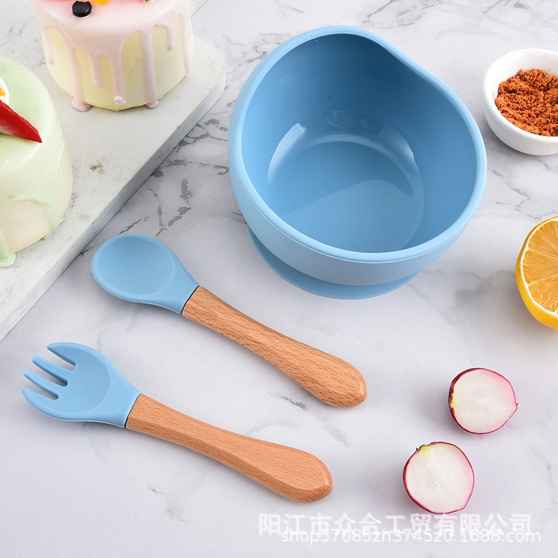 工厂直销食品级儿童硅胶餐具套装宝宝辅食吸盘硅胶碗勺子叉子家用