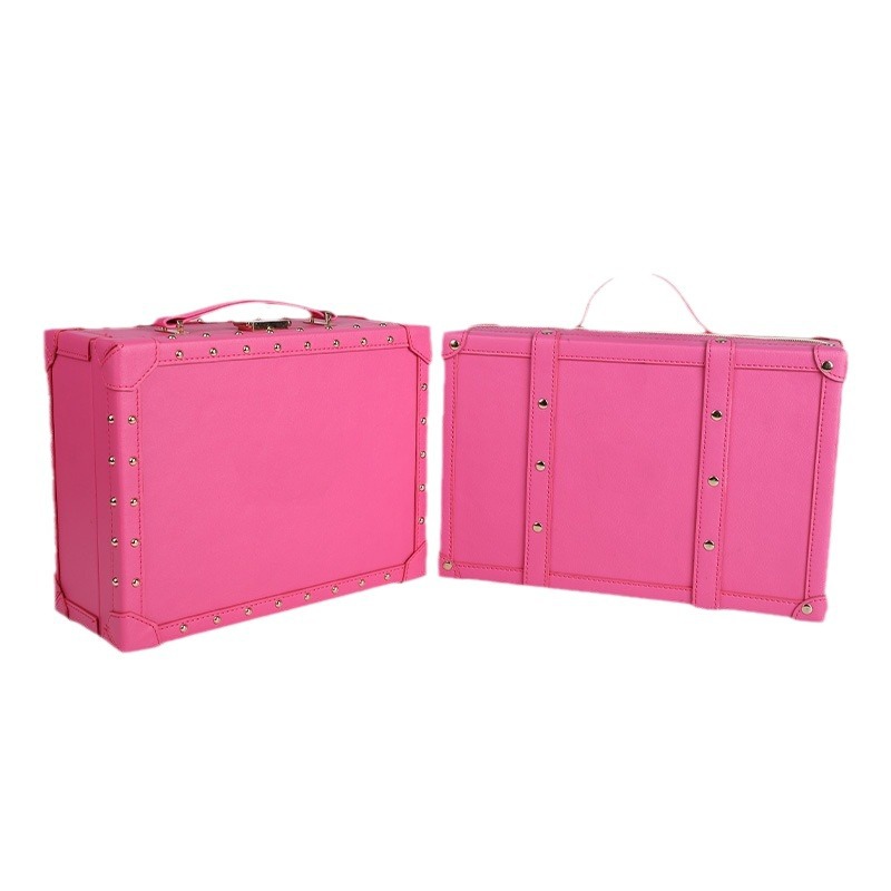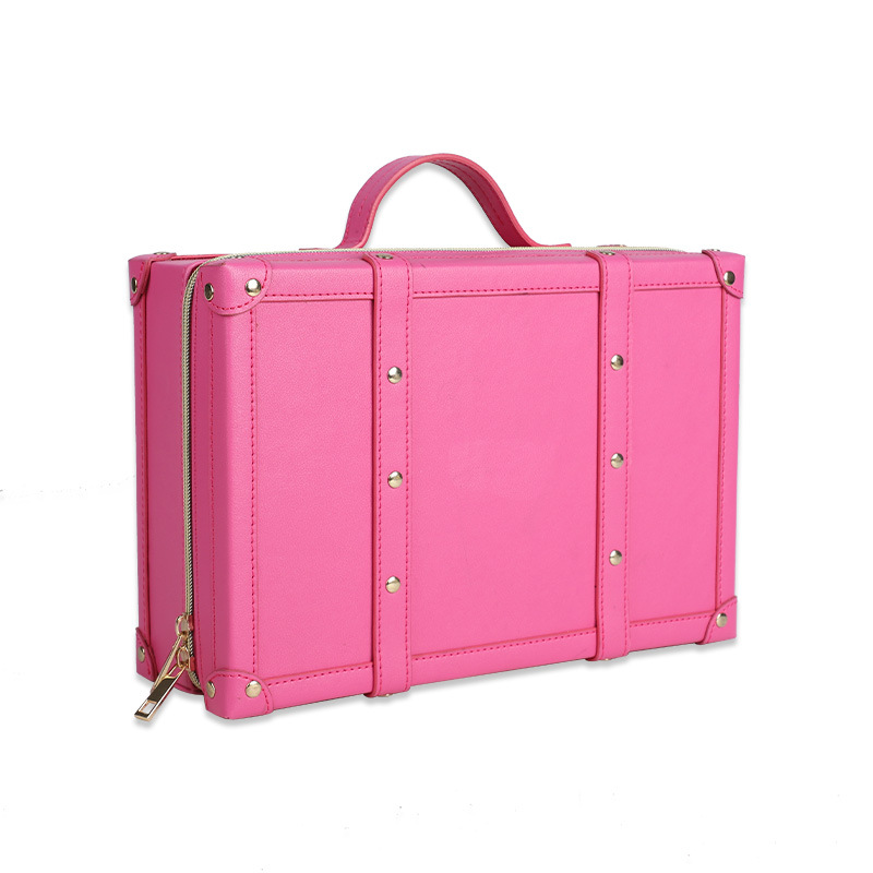 便携式大容量PU皮质化妆盒玫红色纹绣手提单肩隔板收纳化妆箱定制