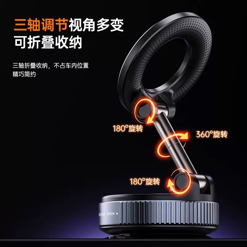 跨境车载手机支架真空吸盘强磁磁吸铝合金车载手机支架导航支架