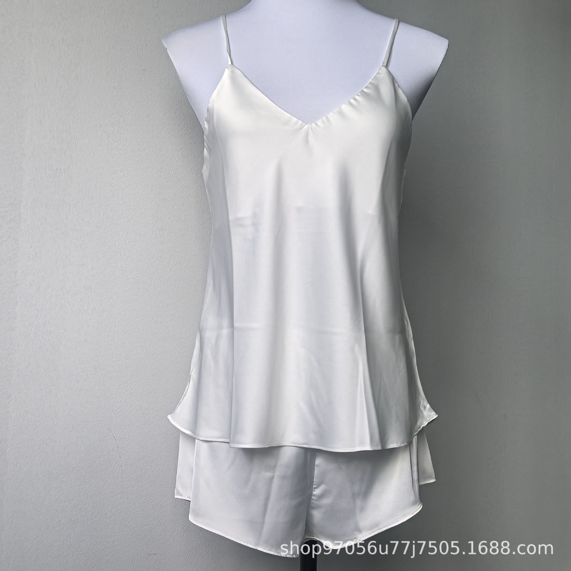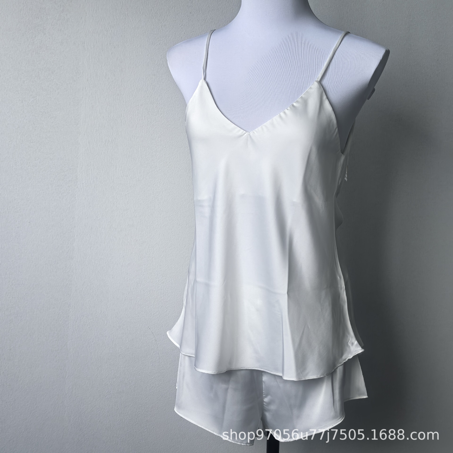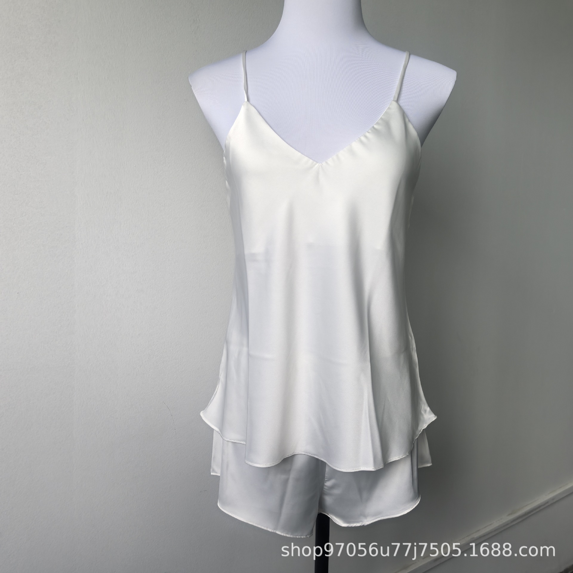 夏季100桑蚕丝素绉缎吊带短裤睡衣性感亲肤丝滑套装清凉透气奢华