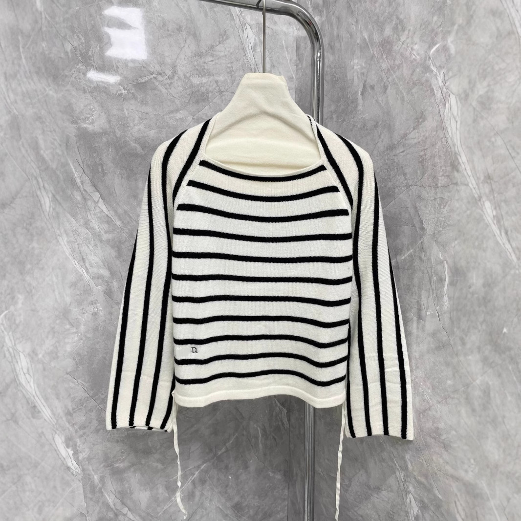 颜色条纹一字肩长袖