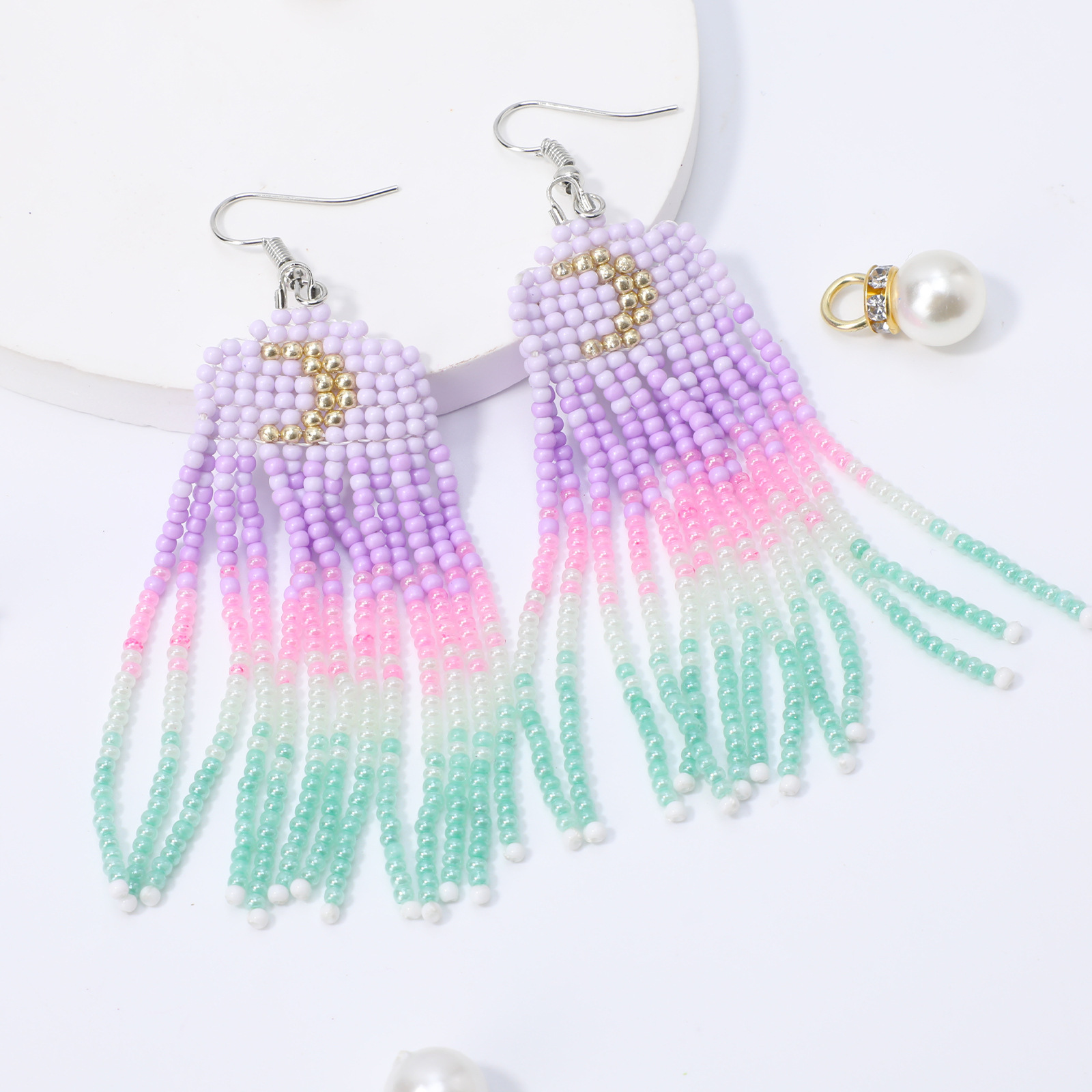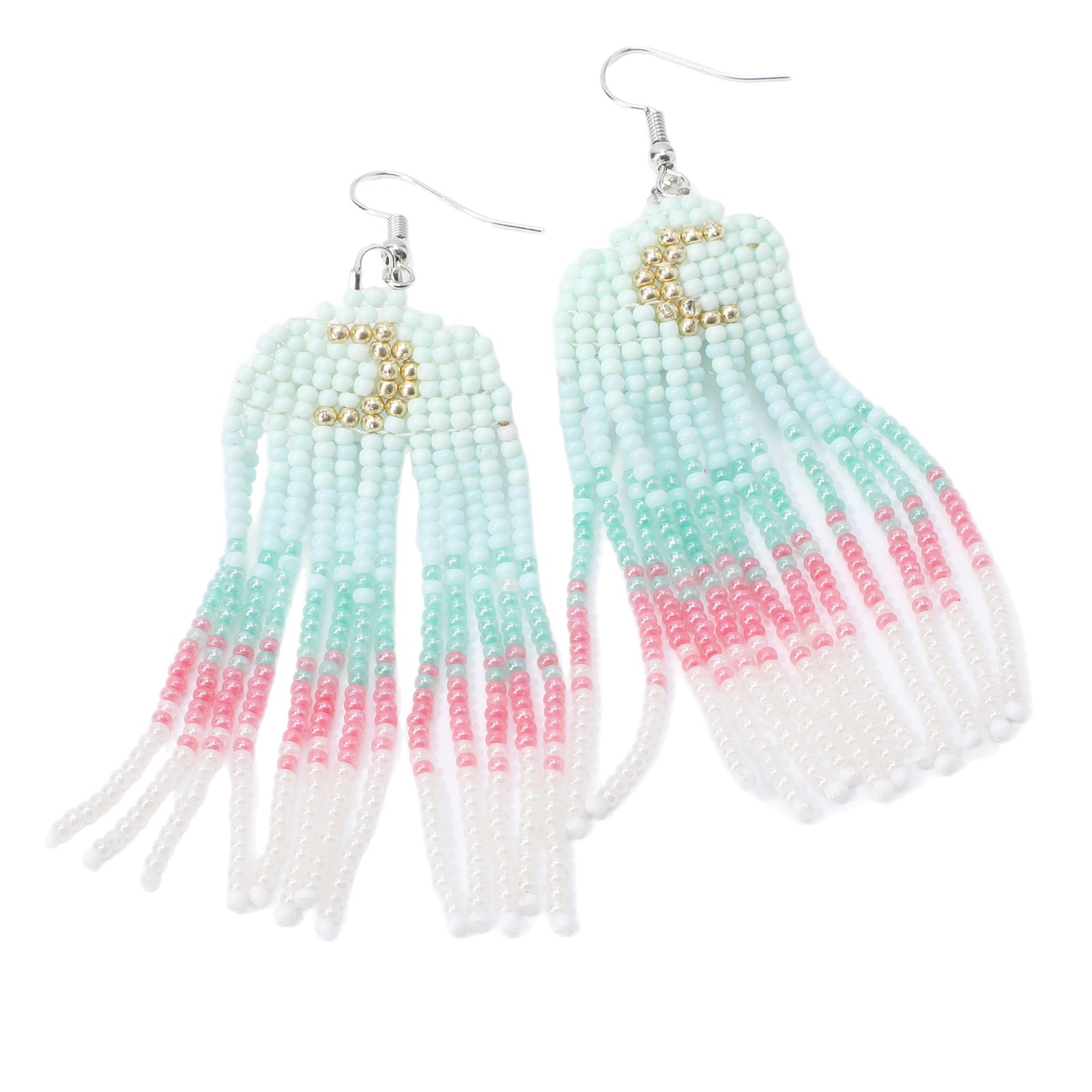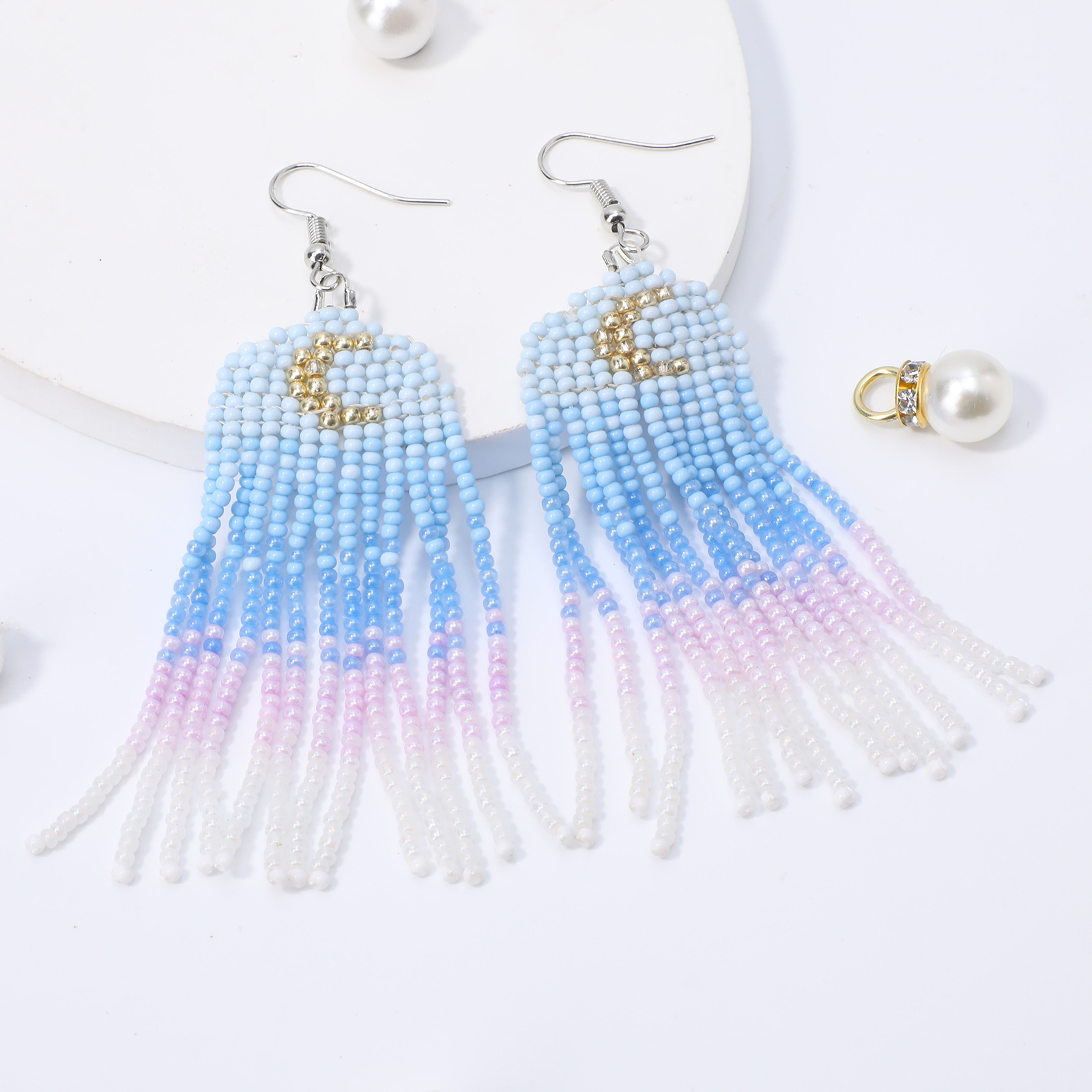 欧美多彩渐变色串珠流苏女士耳环复古小众民族风手工编制耳饰批发