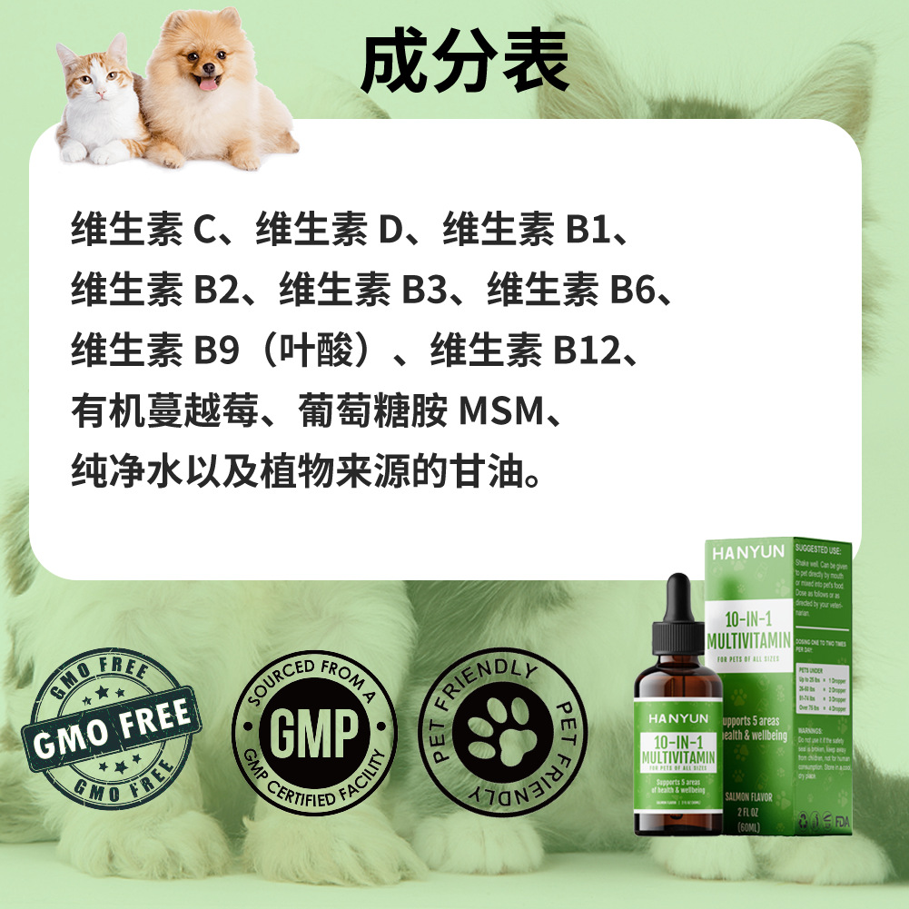 跨境新品宠物10合1复合维生素滴剂缓解消化系统呵护营养补充剂OEM