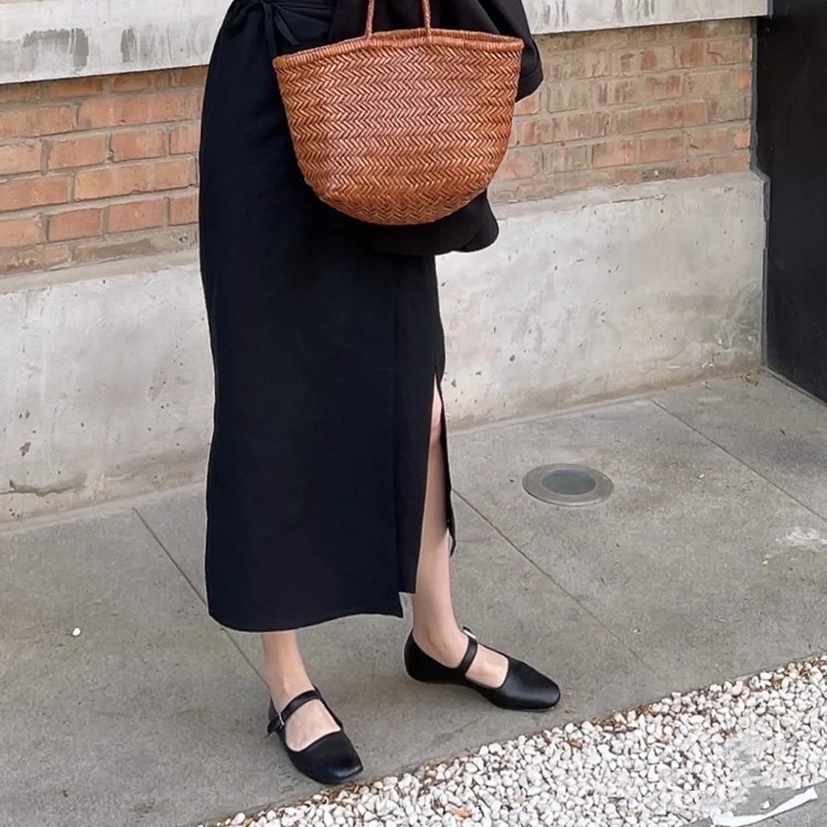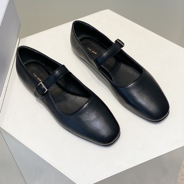 新款row风玛丽珍平底鞋小众方头单鞋复古小皮鞋真皮女鞋舒适百搭