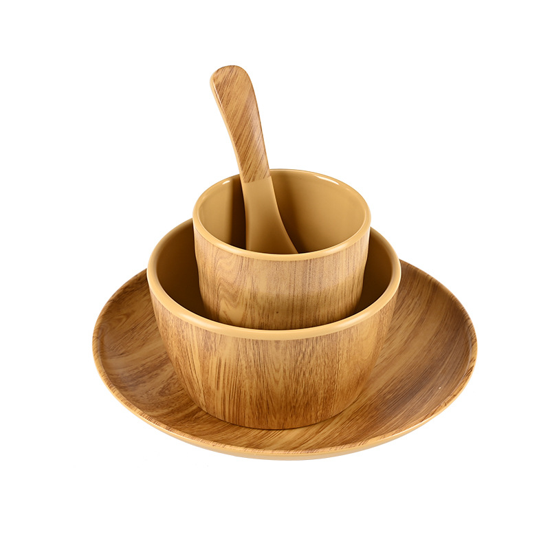 批发仿木碗塑料仿瓷木纹面碗商用木桶饭小碗面馆米线碗仿古代餐具
