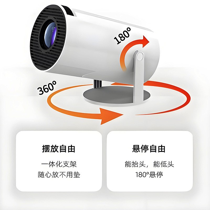 2025新款S200高清炮筒投影仪家用卧室投墙智能手机投屏云台投影机