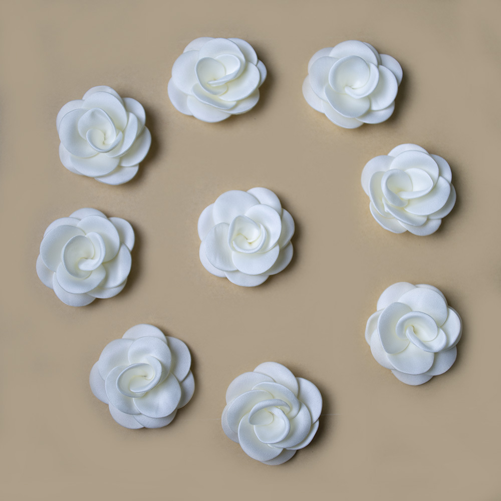 高定款缎面3层12片5.5cm烧边花手工花袜子服装包装盒香水瓶装饰花