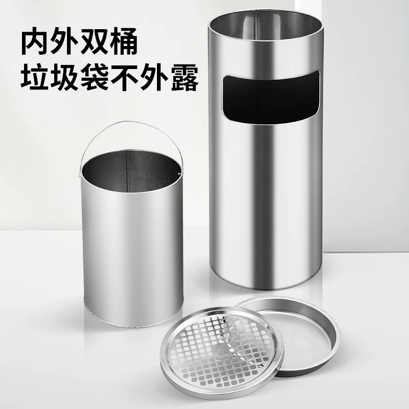 酒店垃圾桶大堂立式带烟灰缸商场电梯口商用不锈钢垃圾桶厂家定制