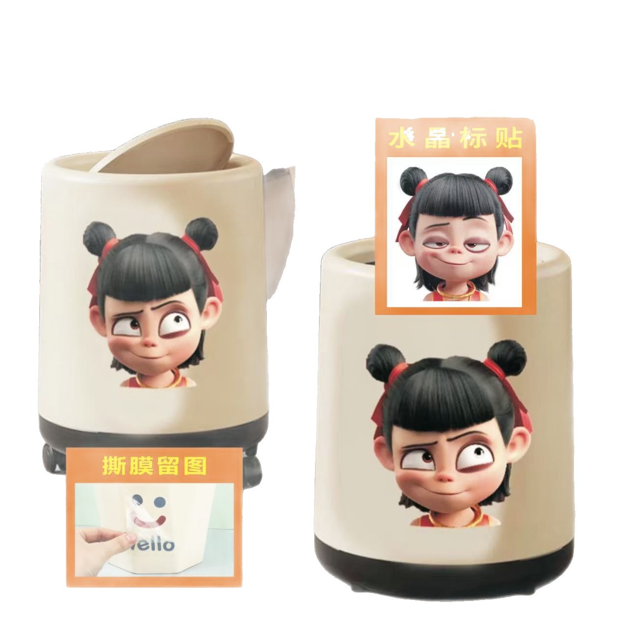 可爱卡通垃圾桶贴纸防水创意哪吒贴画个性DIY立体垃圾桶贴纸定 制